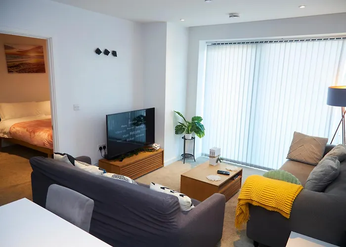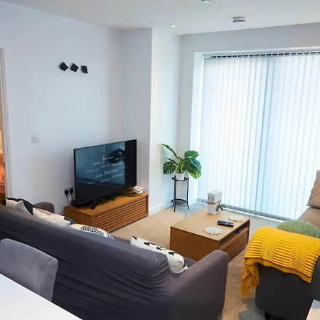 Cosy Two Bedroom Apartment In Mánchester está a 900 metros del Museo Nacional del Fútbol. Ofrece un balcón y una zona de comedor con vistas al jardín.